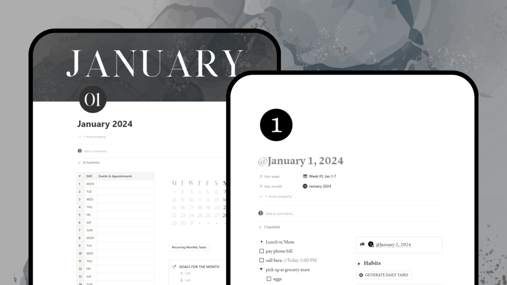 NOTE: The premium template includes premade pages for 2024, and it will automatically fill your daily and weekly logs starting January 1, 2024. You'll need to have a Notion account to duplicate this template to your workspace. You can sign up for free at Notion.so